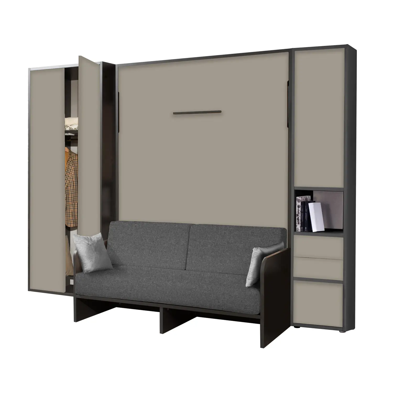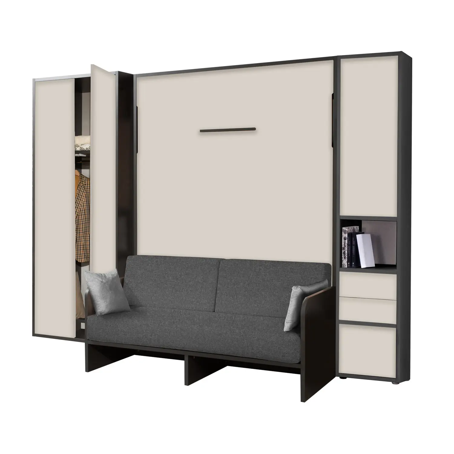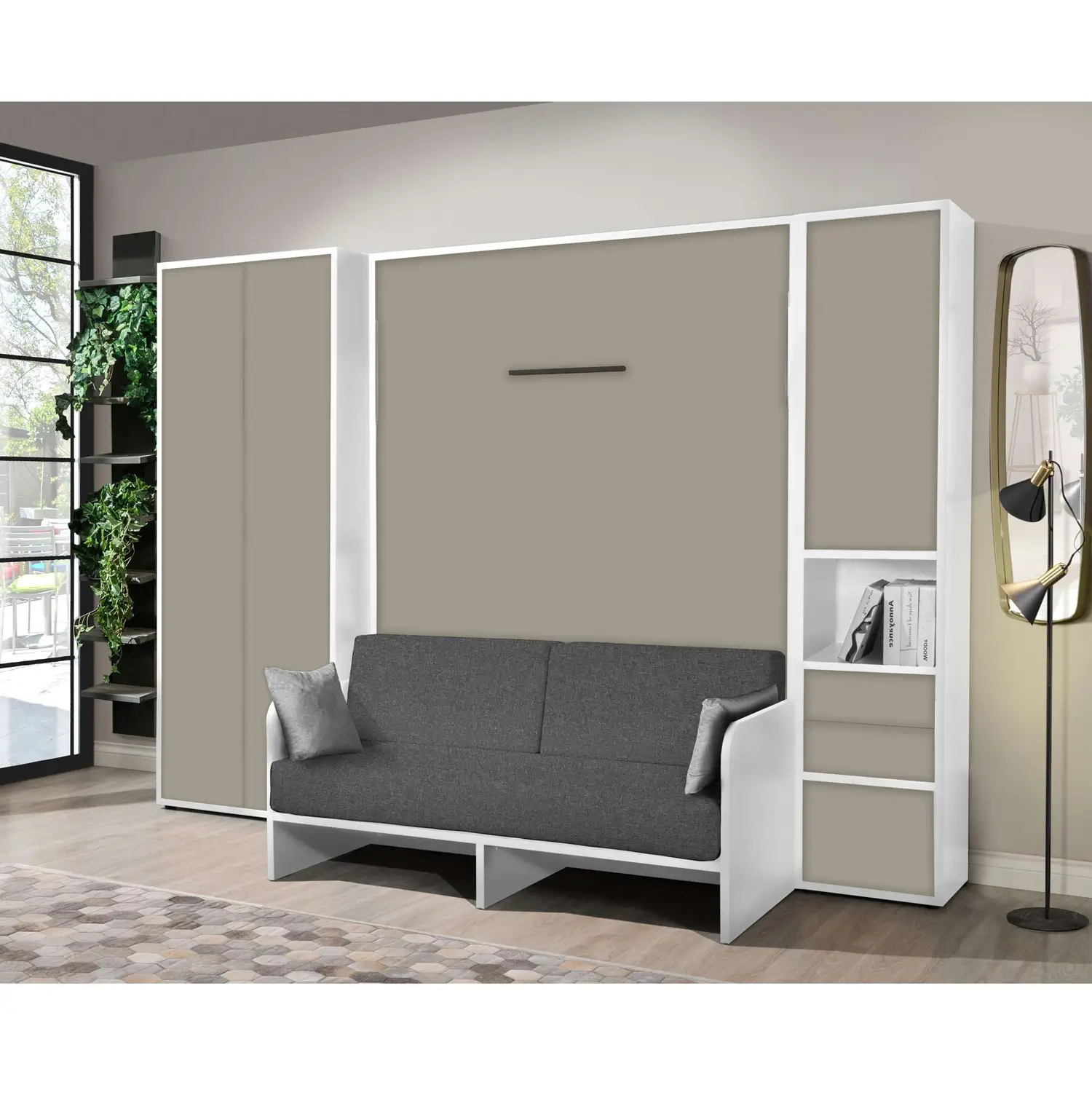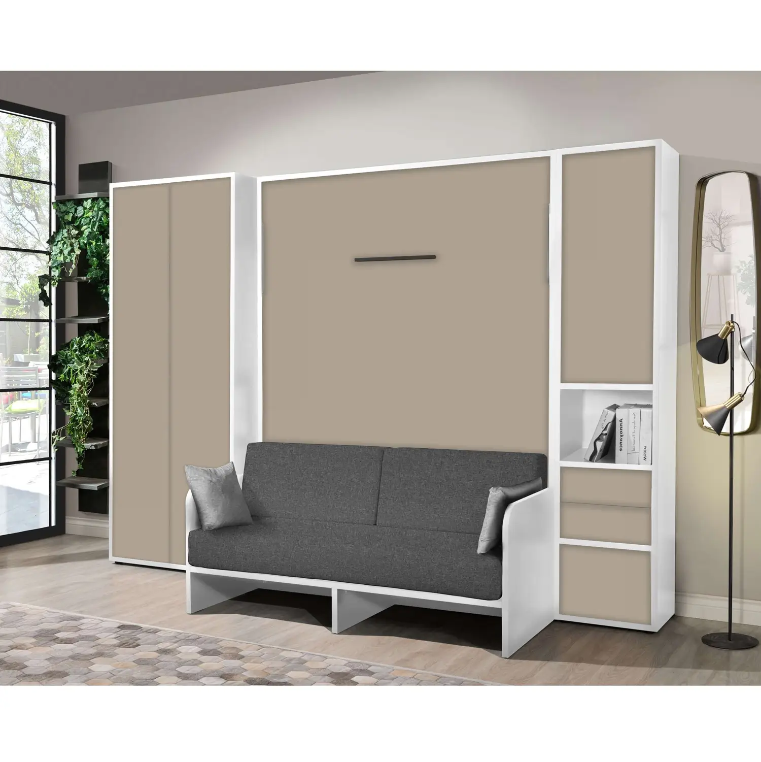Letto a Scomparsa Verticale Con Divano e Armadio Bianco – Set07