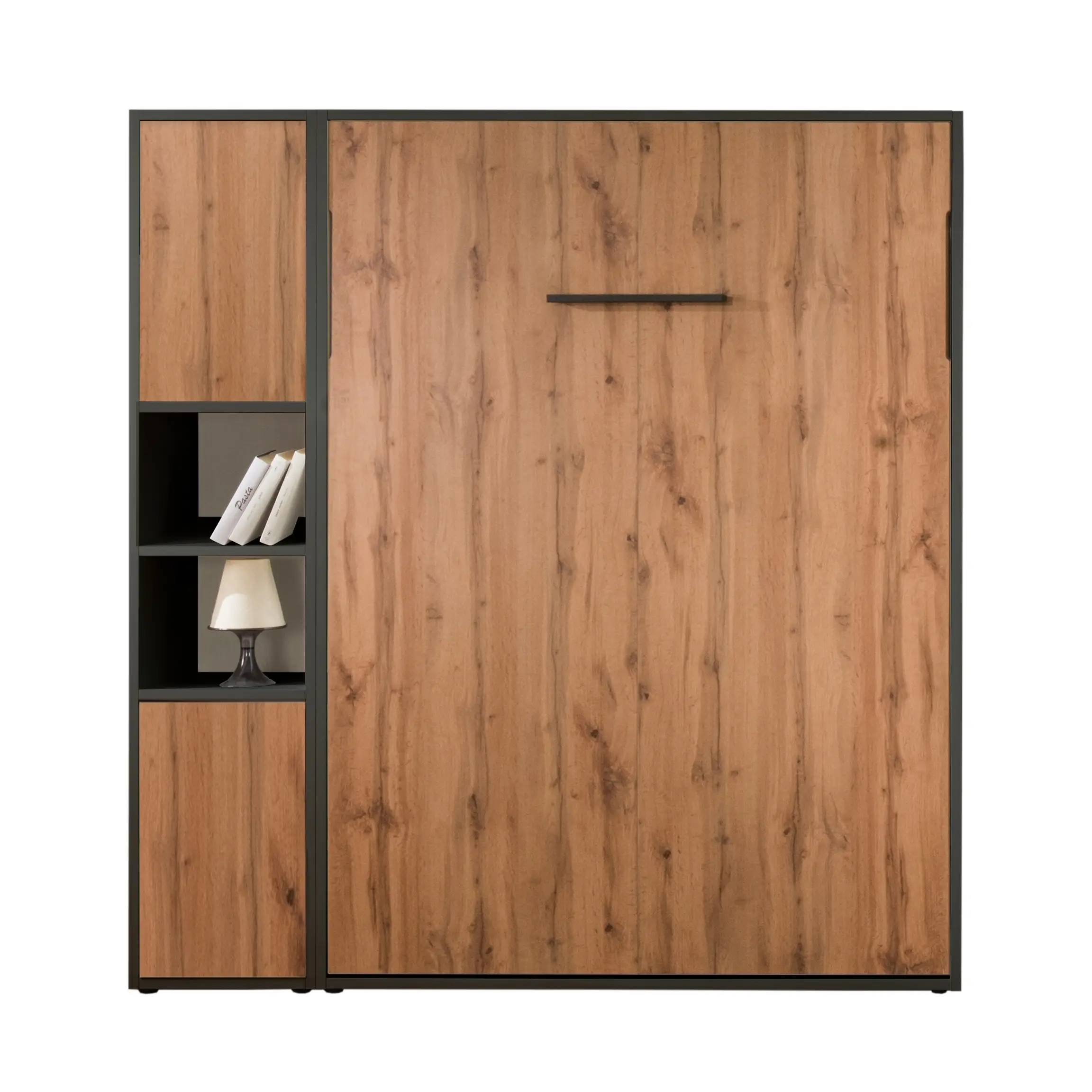 Il Letto a Scomparsa Matrimoniale Quercia – Set08M è progettato per rispondere alle esigenze di chi vive in spazi ridotti, senza rinunciare a comfort, estetica e funzionalità. Il mobile, una volta chiuso, assume l’aspetto di un moderno armadio con linee sobrie e una calda finitura effetto quercia, facilmente integrabile in qualsiasi contesto abitativo.