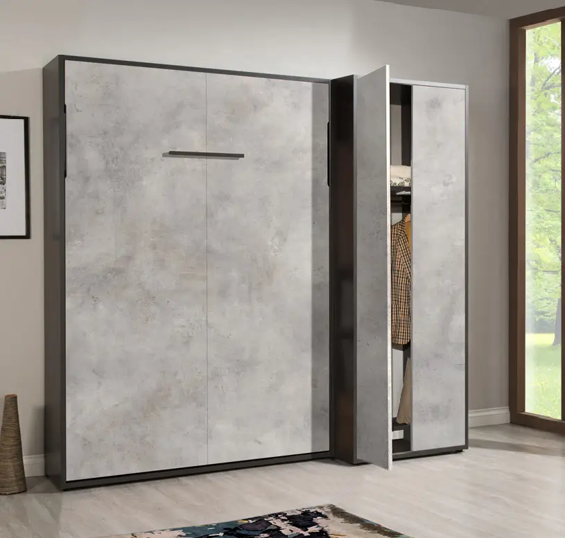 Letto a Scomparsa Matrimoniale Con Armadio Cemento – Set15M
