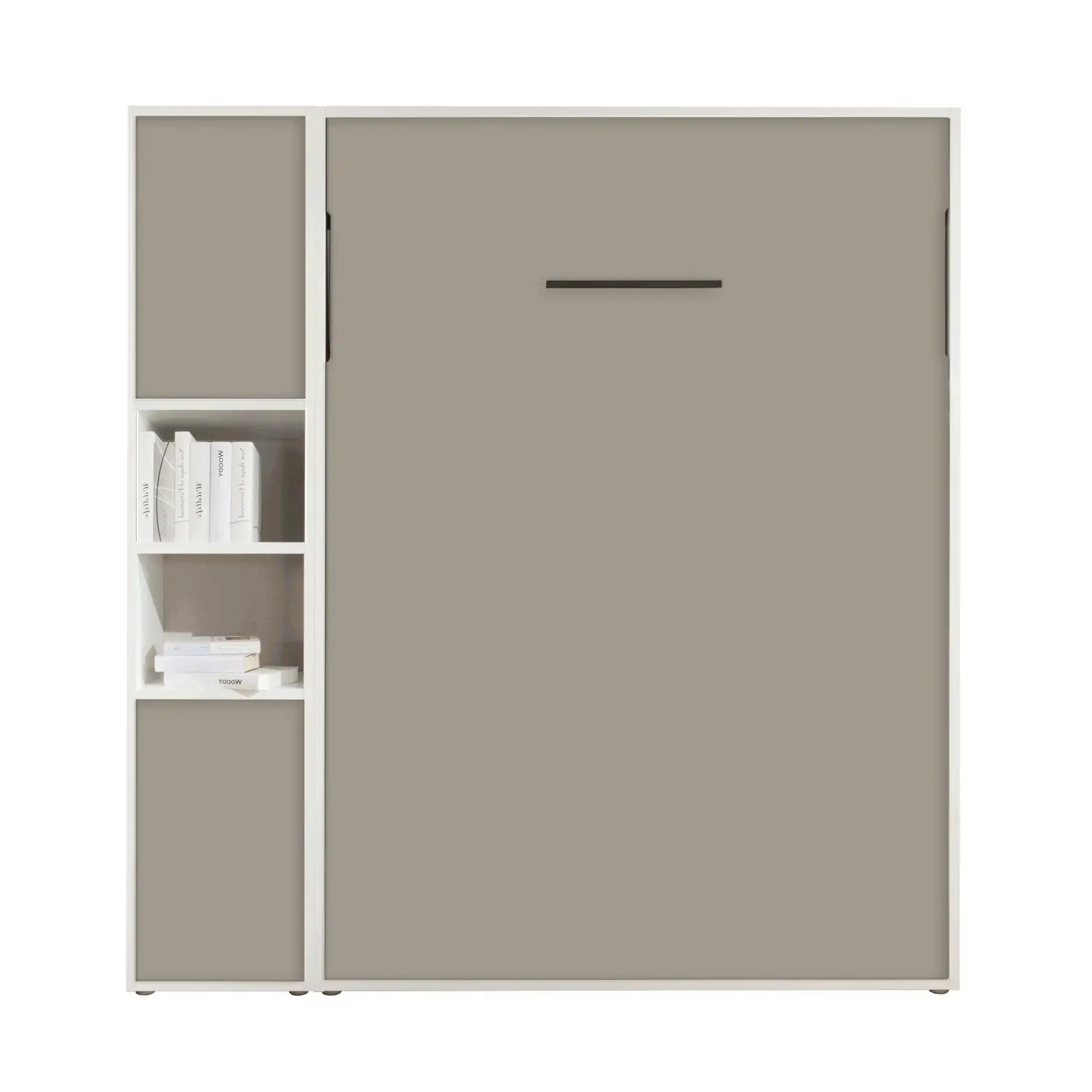 Letto a Scomparsa Verticale – Set08 è un mobile multifunzionale dal design moderno, perfetto per ottimizzare gli spazi ridotti. Due letti alla francese integrati in un unico modulo con armadio e libreria, ideali per ambienti che uniscono zona giorno e notte.