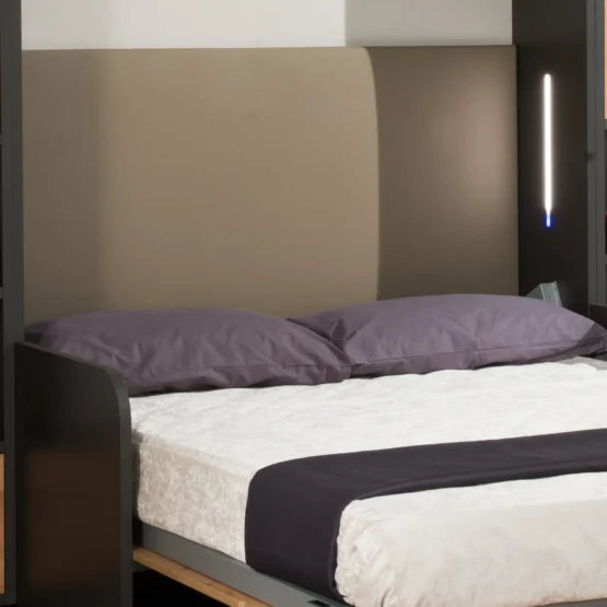Mobile trasformabile per eccellenza, EASY BED è ideale per far convivere zona giorno e zona notte nello stesso ambiente. Da chiuso, il mobile letto/ contenitore assume l’aspetto di un grande armadio moderno, essenziale e misurato, con un design di linee pulite e colori tenui e rassicuranti, nel quale sono stati inseriti diversi comfort tra cui il sistema di Push&Pull sia per i cassetti che per le ante e la ribaltina (ideale per uno spazio “open bar”) da completare con i moduli contenitivi, quali le basi porta TV, i vani a giorno, armadio, librerie e scrivania.