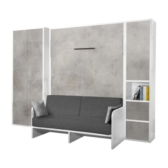Easy Bed: Il Letto a Scomparsa Verticale Alla Francese con Divano, Librerie e Armadio è perfetto per chi desidera uno spazio multifunzionale e moderno.